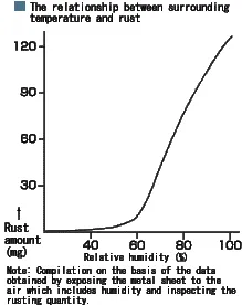 ความชื้นเป็นปัจจัยหนึ่งที่ทำให้เกิดปัญหาขึ้นกับเครื่องจักร ภายในเครื่องจักรมีชิ้นส่วนที่เป็นข้อต่อจำนวนมาก ซึ่งบริเวรข้อต่อจะมีความชื้นเป็นศัตรูเป็นอย่างมาก จากกราฟแสดงความสัมพันธ์ระหว่างการกัดกร่อนและความชื้น พบว่าการกัดกร่อนเกิดขึ้นอย่างรวดเร็วเมื่อมีความชื้นสูงกว่า 60% และความชื้นประมาณ 70% เป็นระดับที่พบในประเทศญี่ปุ่น ดังนั้นมาตรฐานการความชื้นจึงมีความสำคัญมากในการควบคุมเครื่องจักร นอกจากนี้การกัดกร่อนจะมีมากขึ้นเมื่ออุณหภูมิสูงขึ้น มาตรฐานของความร้อนจึงต้องได้รับการพิจารณพร้อมกันกับความชื้น